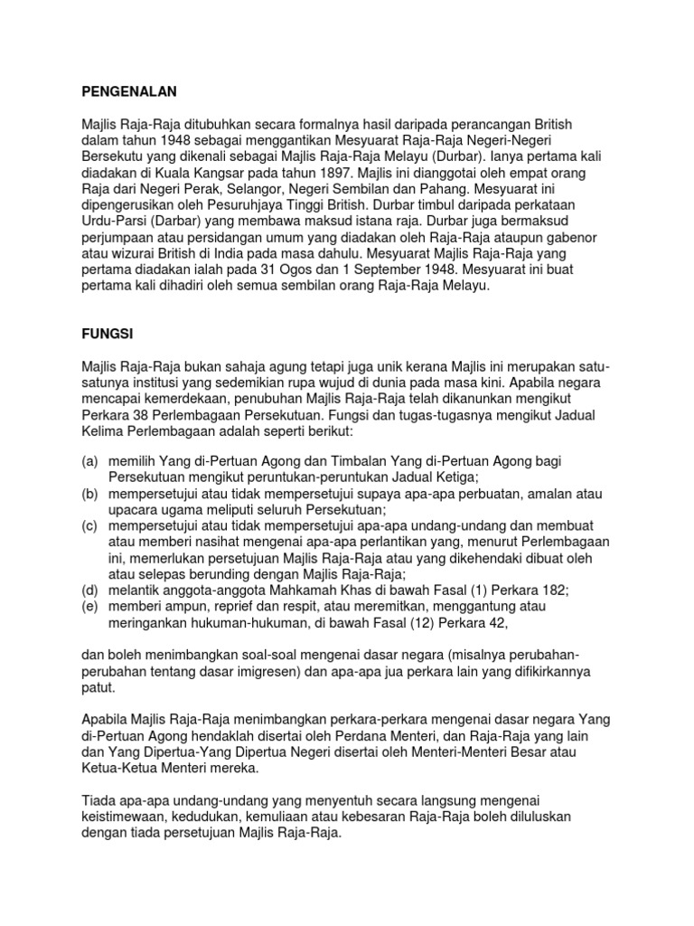 Peranan Majlis Raja Raja Dalam Sistem Perlembagaan Malaysia Pdf